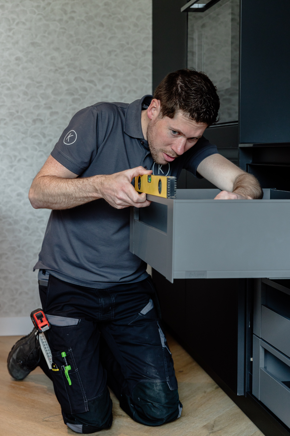 Voor een praktischere indeling hebben we bij deze klant de legplanken vervangen voor lades. Zo kan er efficiënter omgegaan worden met de ruimte.